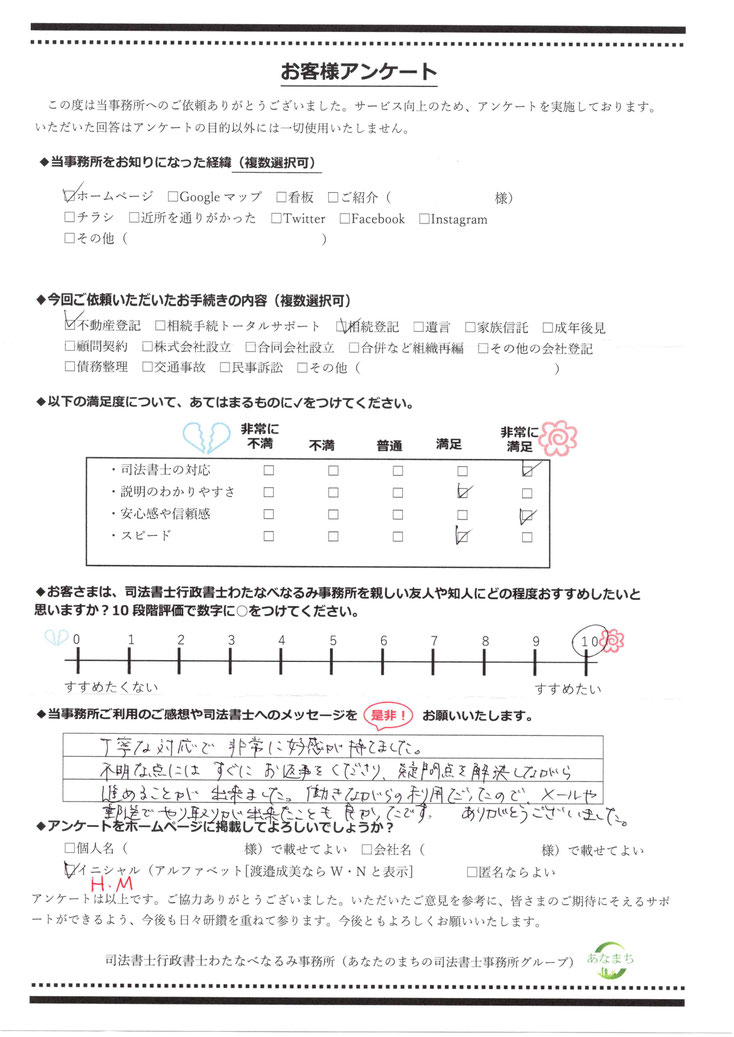インターネットHPから当事務所を選定、ご依頼いただき誠にありがとうございました。