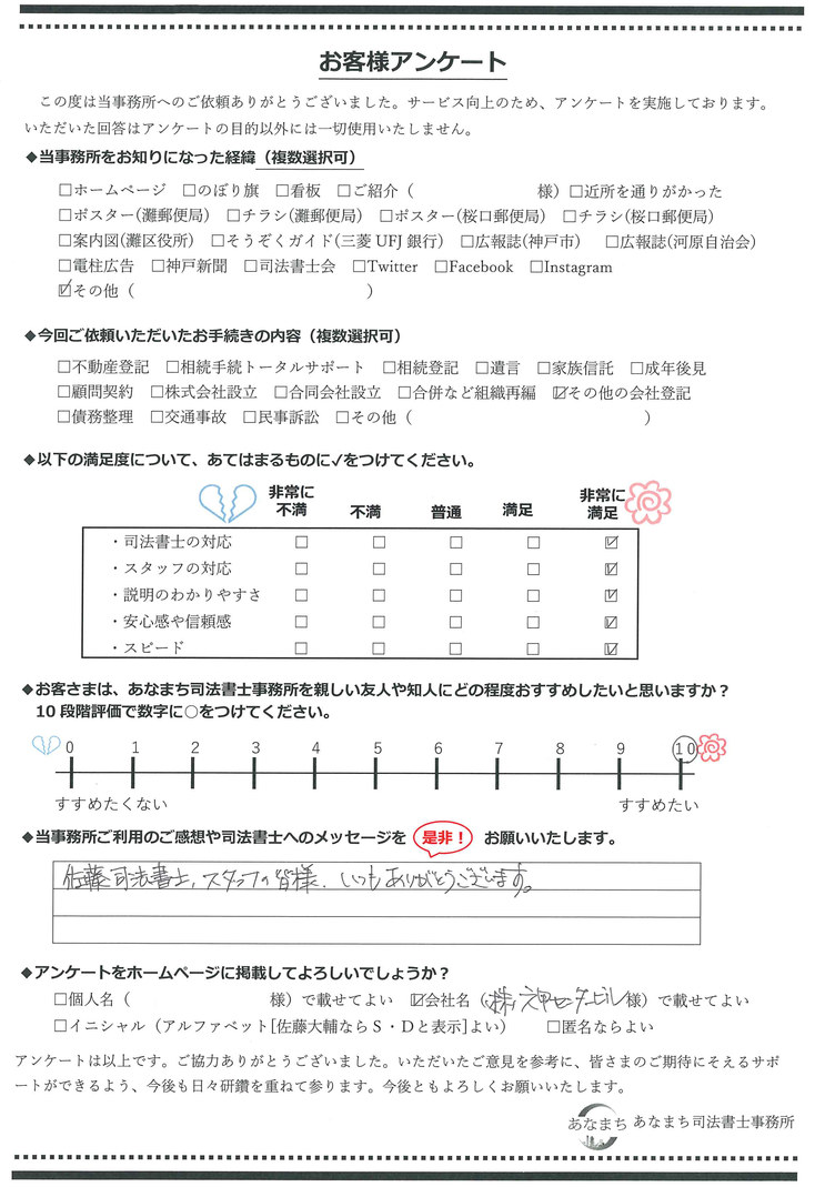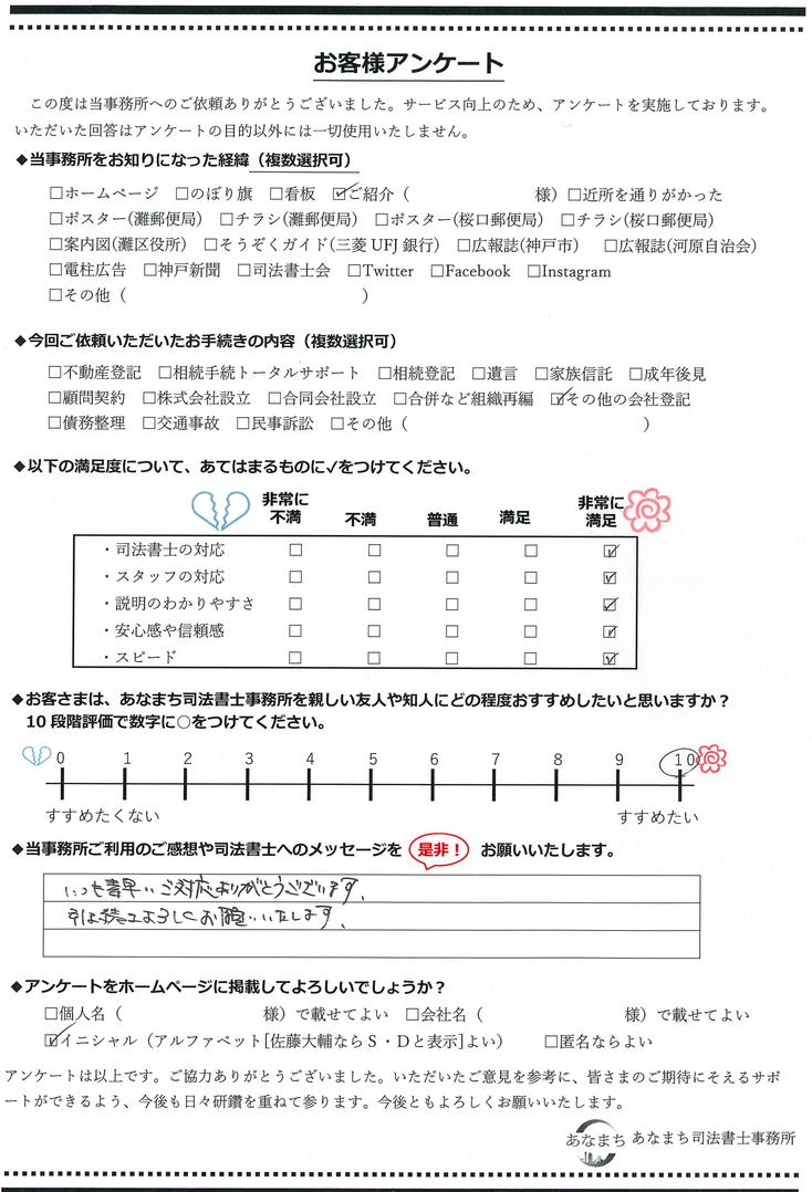 当事務所のサービスに感動いただき、誠にありがとうございます。